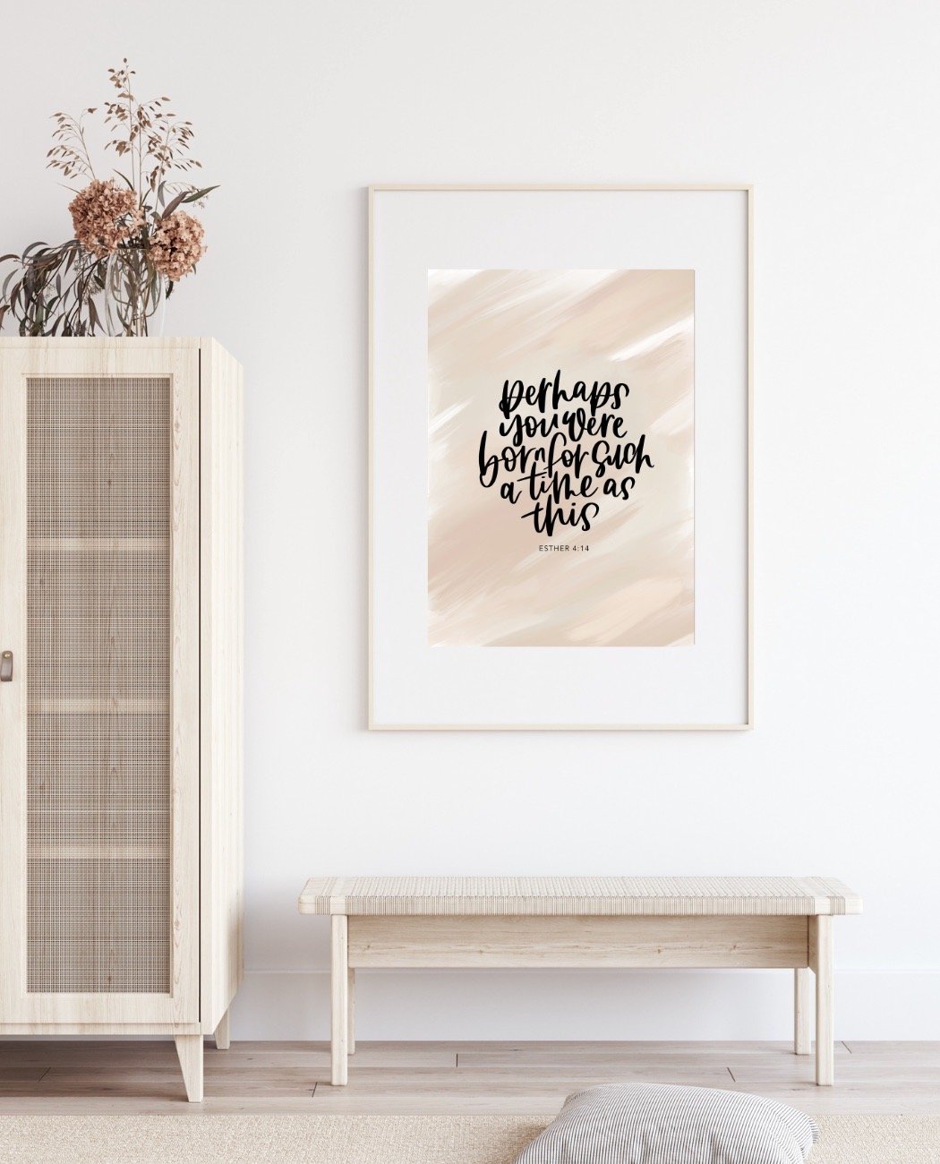 Original A4 hand lettered print featuring a hand painted abstract art background and the text ‘Perhaps you were born for such a time as this' Esther 4:14