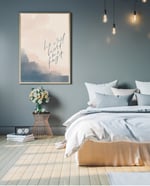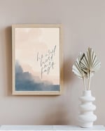 Original A4 hand lettered print featuring a hand painted abstract art background and the text ‘He will hold me fast’ Proverbs 31:25.
